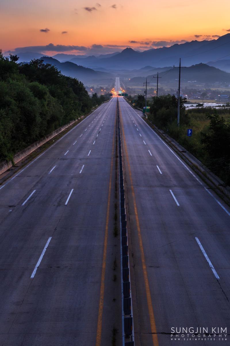 평소 다니면서 눈여겨 봐 뒀던 장소의 위치를 지도앱에 저장해 두었다가 결국 몇 년이 지나서야 들려서 사진으로 담아왔다. 그 동안 바빠서 못 만나던 지인분과 담소도 나누고 라면도 먹고 보름달 휘영청 밝은 밤에 지나가는 자동차 궤적 그리고 선명하진 않지만 별궤적도 담고 아침 해 뜰 때까지 기다리다가 따스한 아침 햇살에 물든 오렌지 빛 도로까지 담고 돌아왔다.