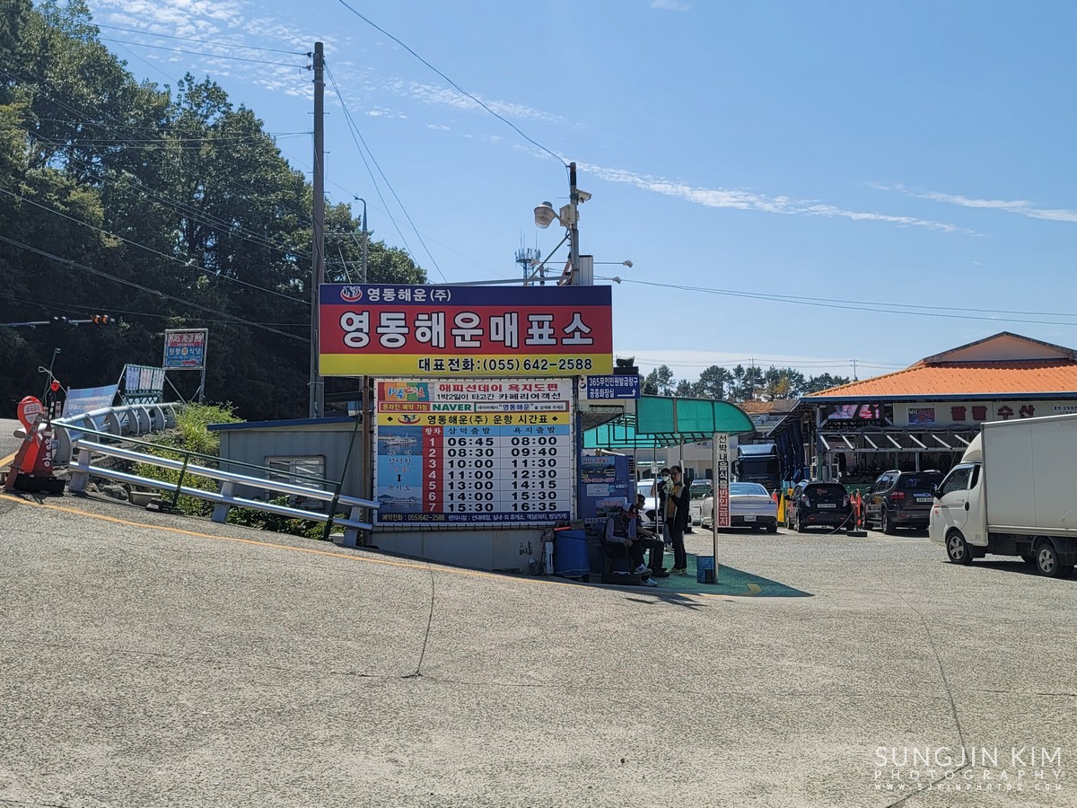 욕지도 들어가는 배를 타기 위해 삼덕항의 영동해운 매표소에 표를 사고 차를 싣고 들어갈 준비를 한다.