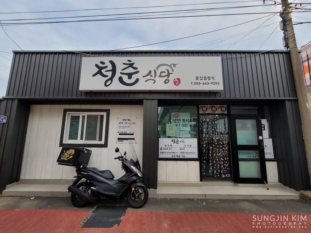 욕지도 맛집 중의 하나인 청춘식당의 꽃삼겹 정식...
