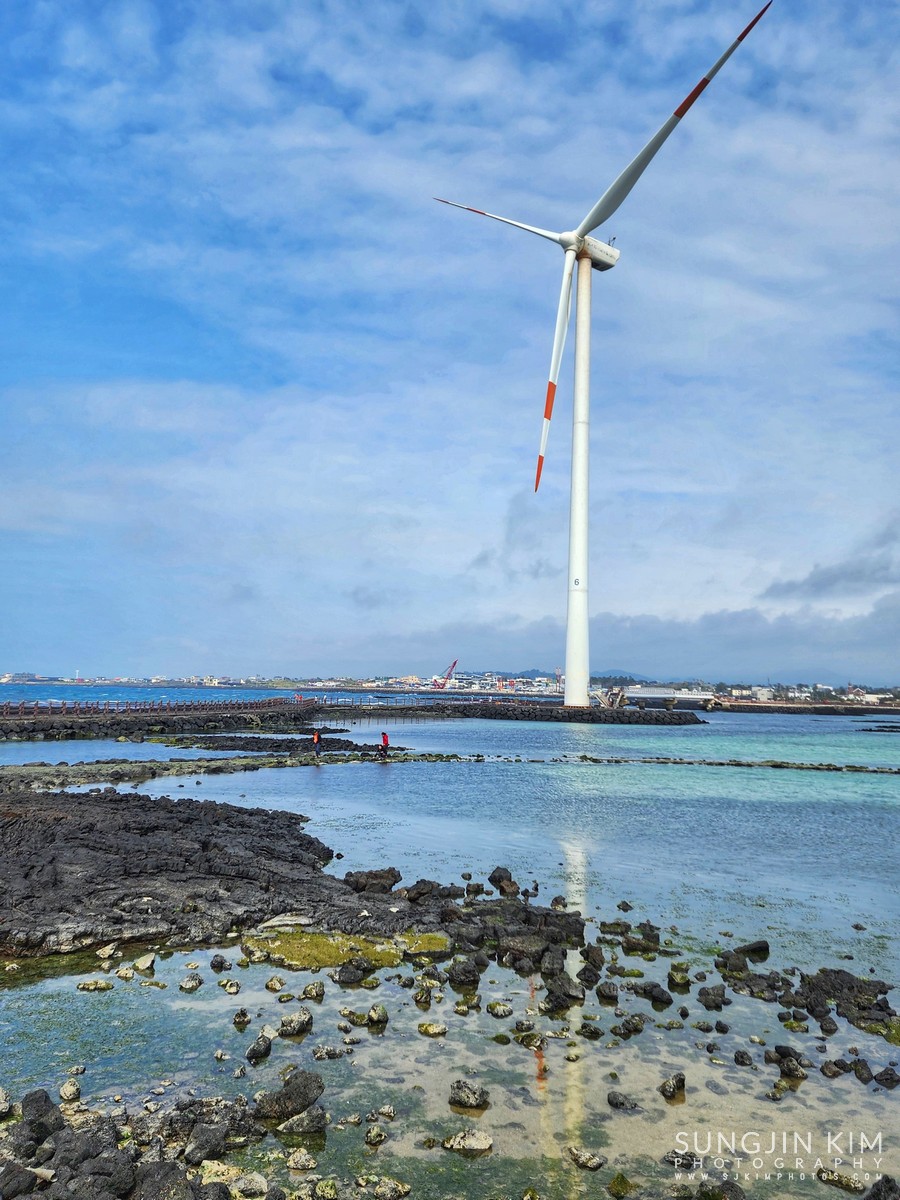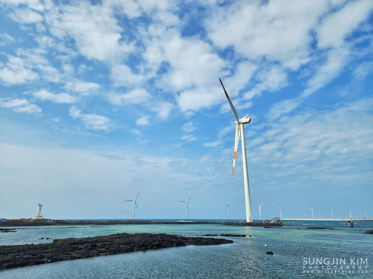 후식을 즐기고 다음으로 찾은 곳은 신창풍차해안도로. 바다에 떠 있는 듯한 풍력발전기가 줄지어 서 있어서 이국적이면서 바다 바람이 시원한 곳이다. 산책로를 따라 한바퀴 돌면서 원 없이 바람 맞고 왔다.