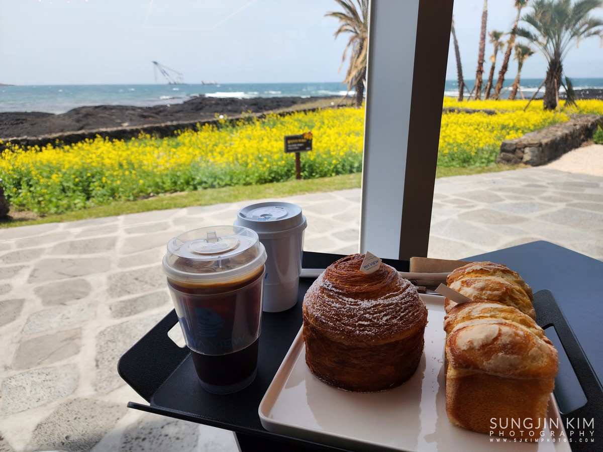 다음은 웨이뷰라는 카페에서 베이커리와 커피를 후식으로 먹으면서 노란 유채꽃밭 풍경도 즐기고...