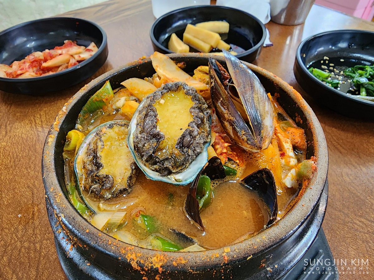 제주도에서의 마지막 식사는 소금바치 순이네에서 돌문어 볶음과 전복뚝배기로 마무리.