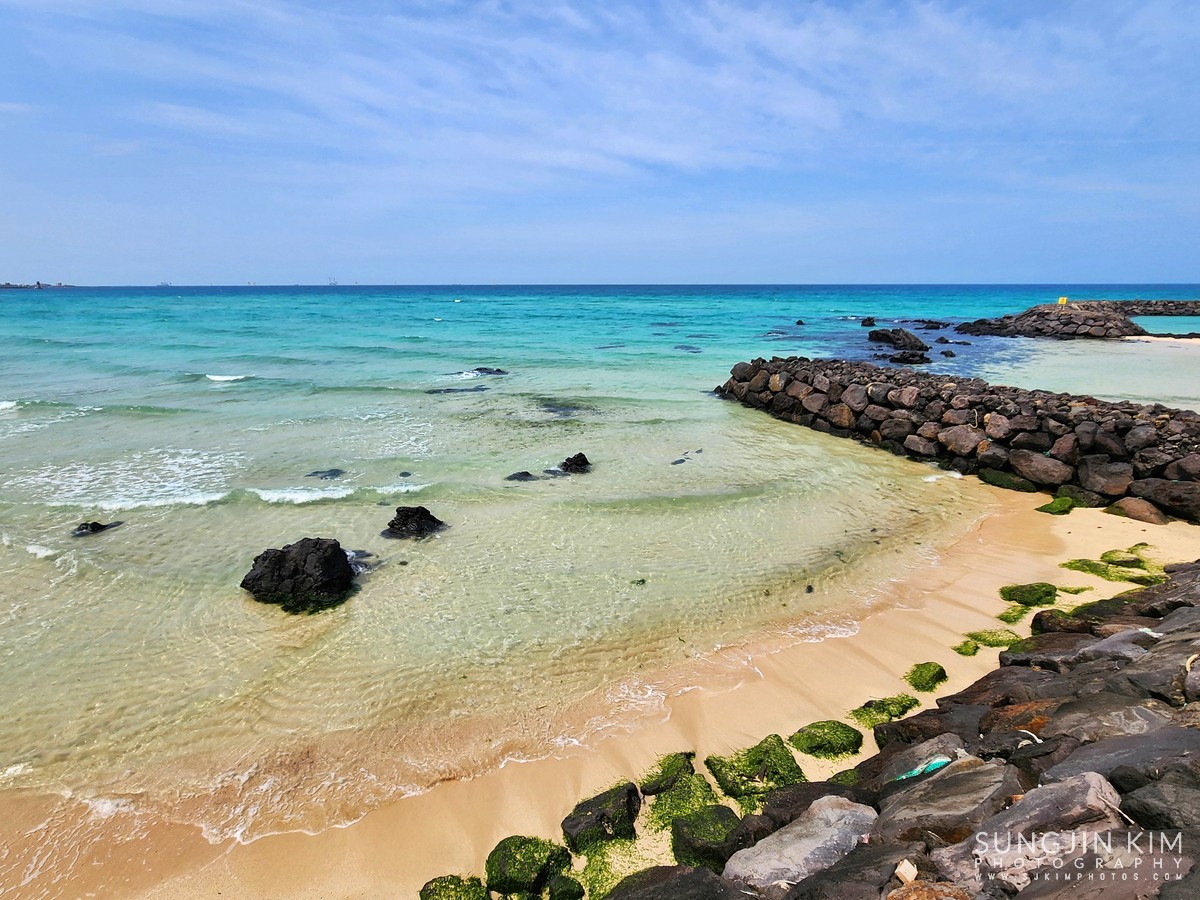 처음으로 들린 곳은 곽지해수욕장. 에메랄드빛 푸른 바다를 보니 약간은 힐링이 되는 느낌이었다.