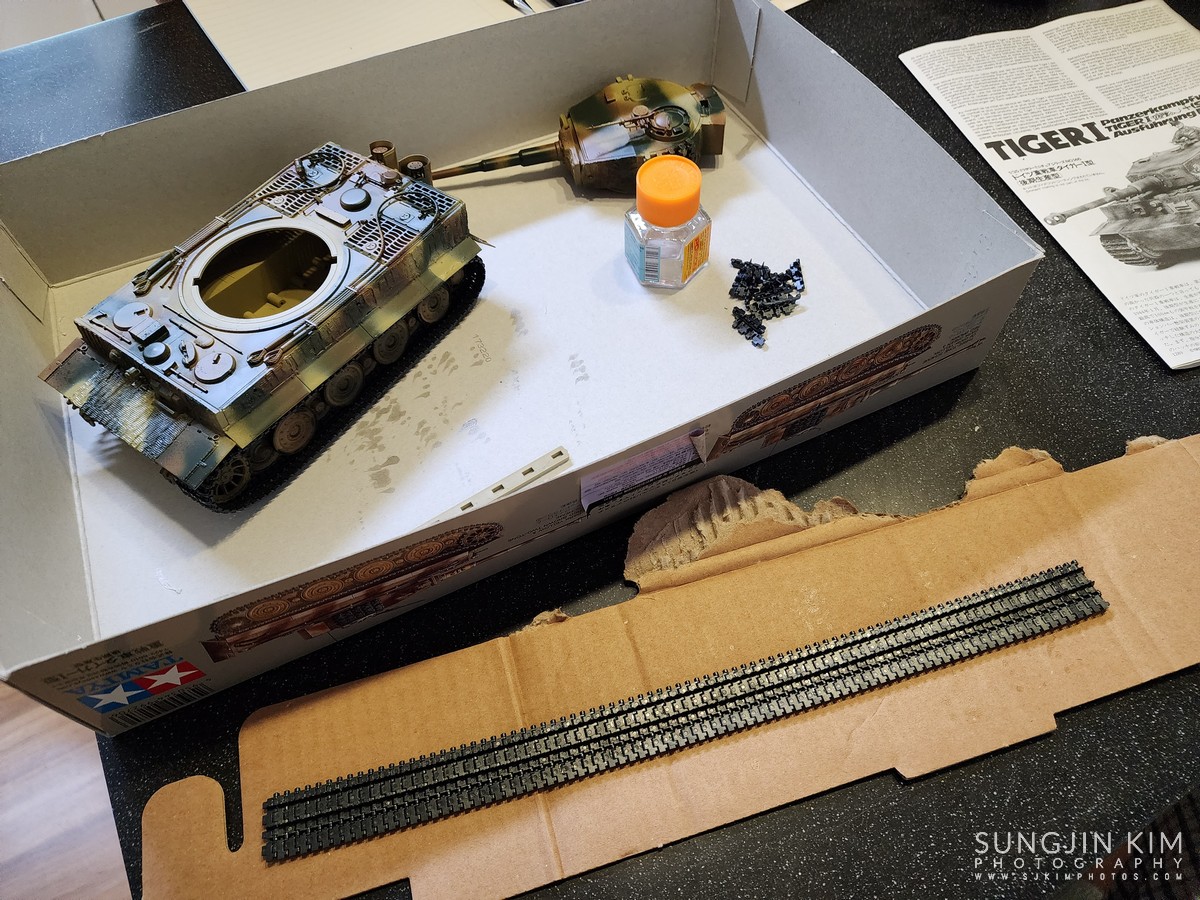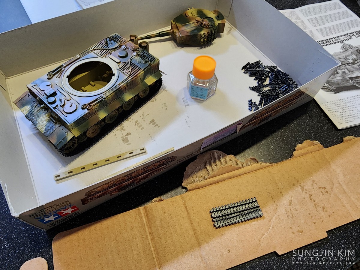 어느 날 몇 년 전에 아들이 학교 수업 시간에 만들다 말고 방치해둔 타미야의 후기형 타이거 전차 프라모델이 눈에 들어왔다. 박스를 열어 보니 포탑만 일부 만들다 말고 그렇게 몇 년을 방치 되어 있었다.