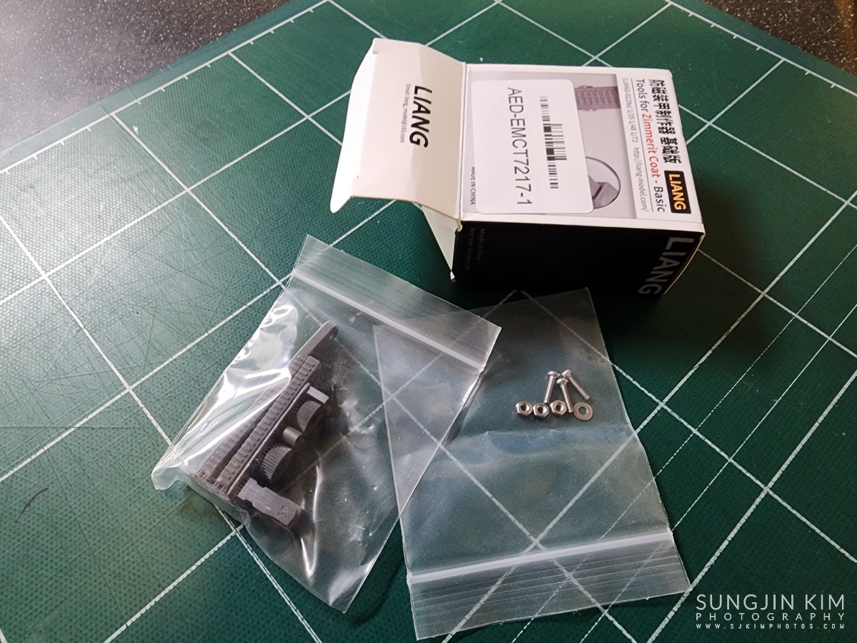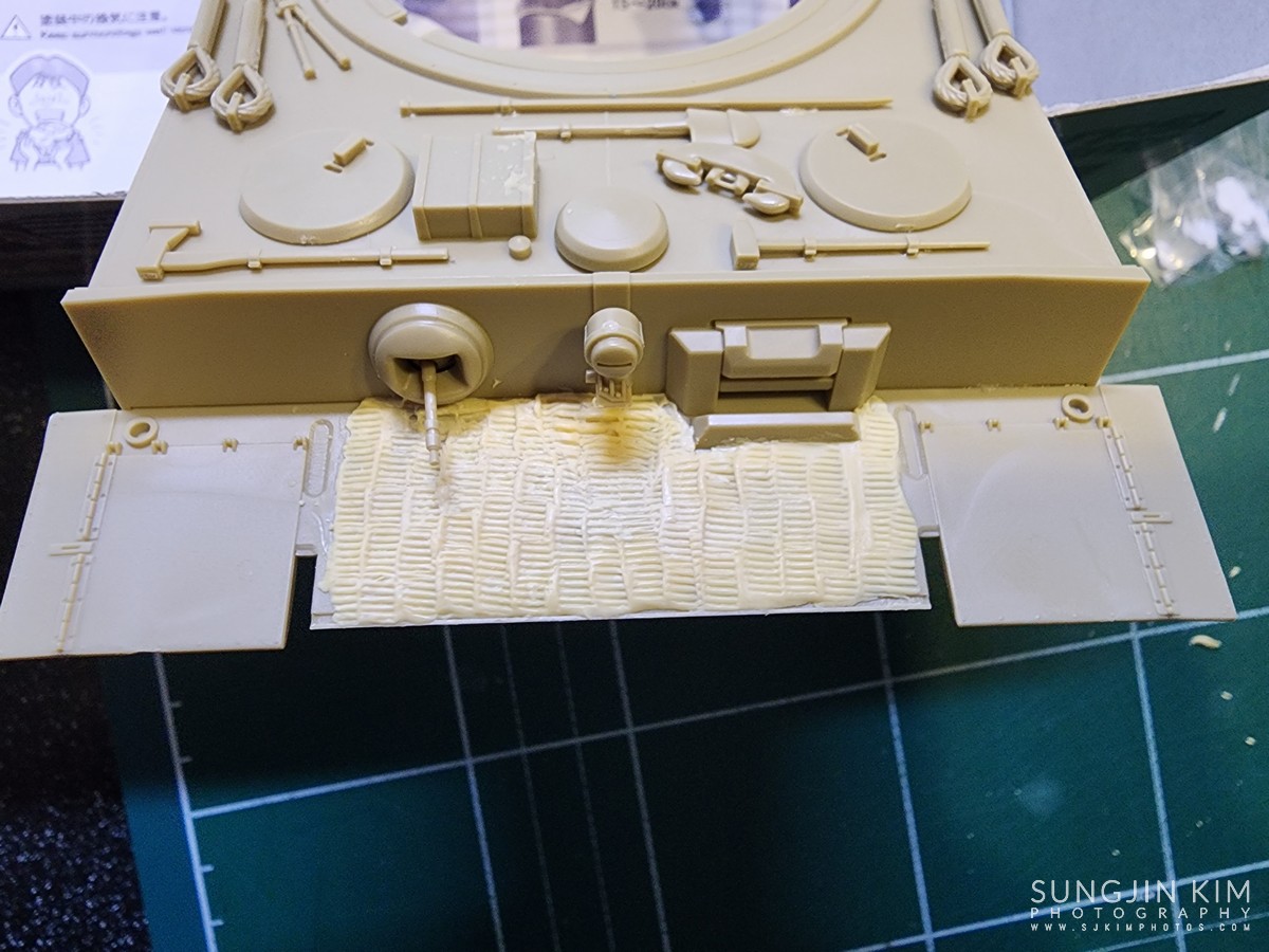 장갑에 짐머릿(zimmerit)을 표현하기 위해 타미야의 에폭시 퍼티도 구매해서 바르고 무늬를 표현했다.
