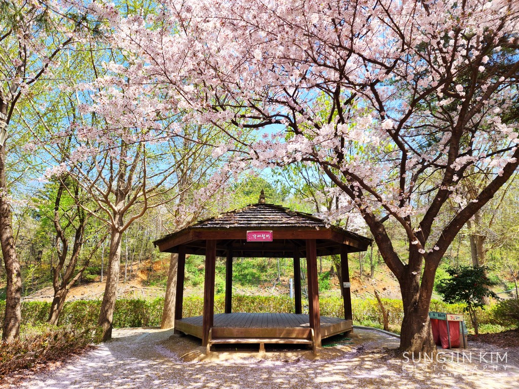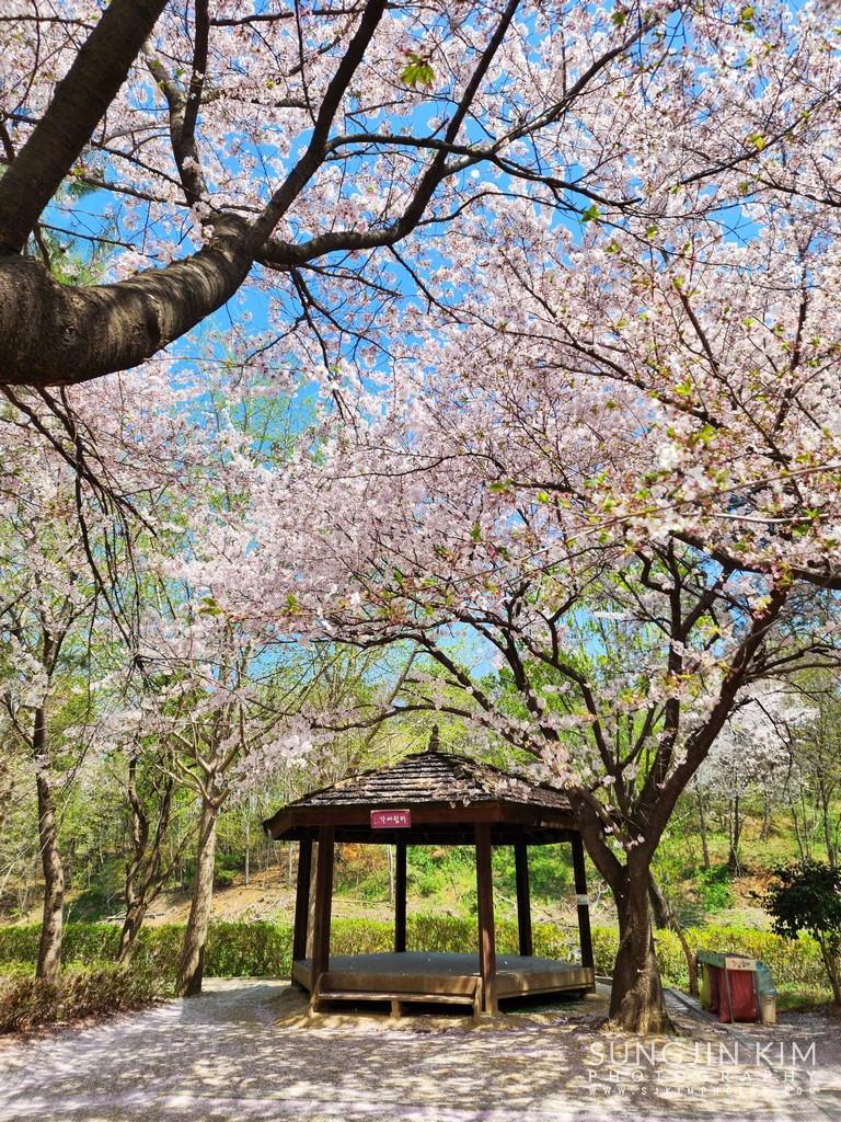 냉면을 먹고 묵호까지 걸어가던 중에 만난 벚꽃 만발한 정자.