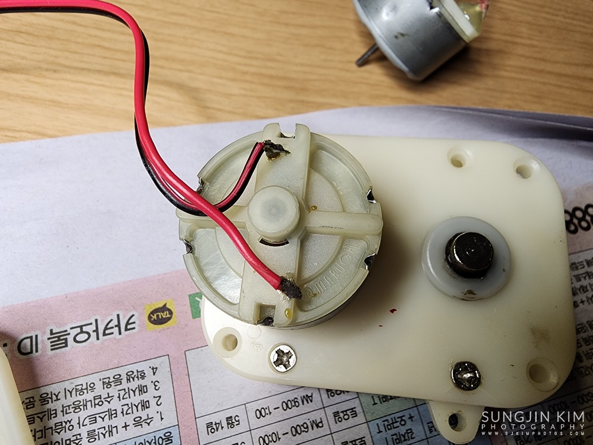모터 모듈 교체를 위해 분해하고 있는 모습...