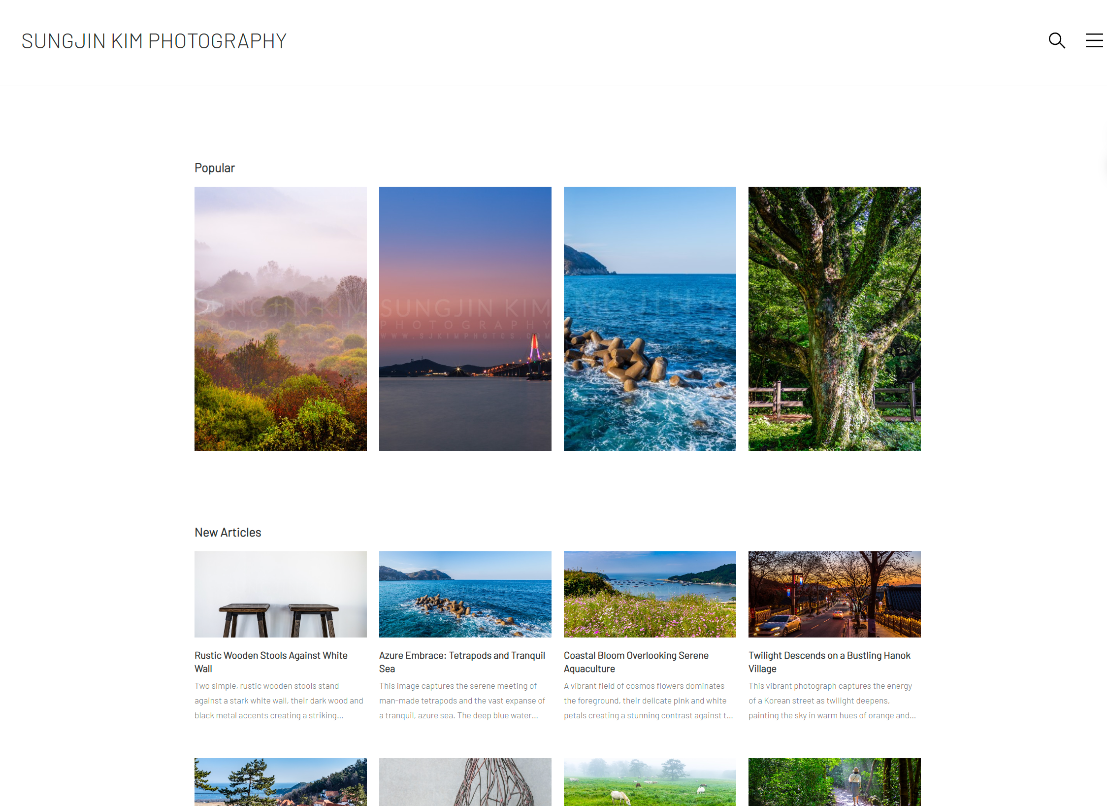 블로그 외에 별도로 운영하고 있는 사진 갤러리 사이트(SUNGJIN KIM PHOTOGRAPHY)에 사진을 게시할 때 마다 제목, 설명 및 태그를 등록하는 일이 보통 일이 아니다. 특히 외국 사람들도 종종 방문하기 때문에 영어로 등록하게 되는데 분위기가 비슷한 사진들은 제목과 설명을 영작하는 일이 아주 고역이다. 그런데 요즘 다양한 AI가 많은 부분을 자동으로 생성해준다는 얘기를 듣고 나도 한 번 시도 해 보기로 했다.