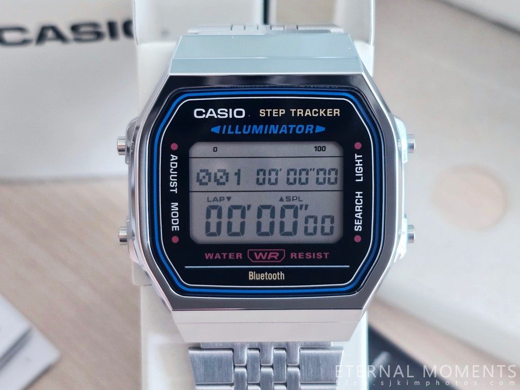 박스에서 꺼내 처음 손목에 찬 순간, "아, 이거다!" 싶었다. 레트로 디지털 워치의 클래식한 디자인에 스텝 트래커, 일루미네이터, 블루투스 연결 기능까지... 1980년대 감성과 2020년대 기술이 하나로 합쳐진 느낌이랄까?