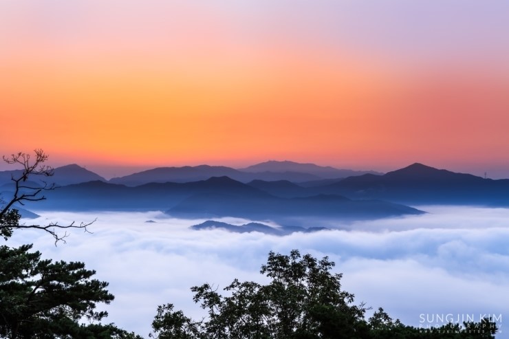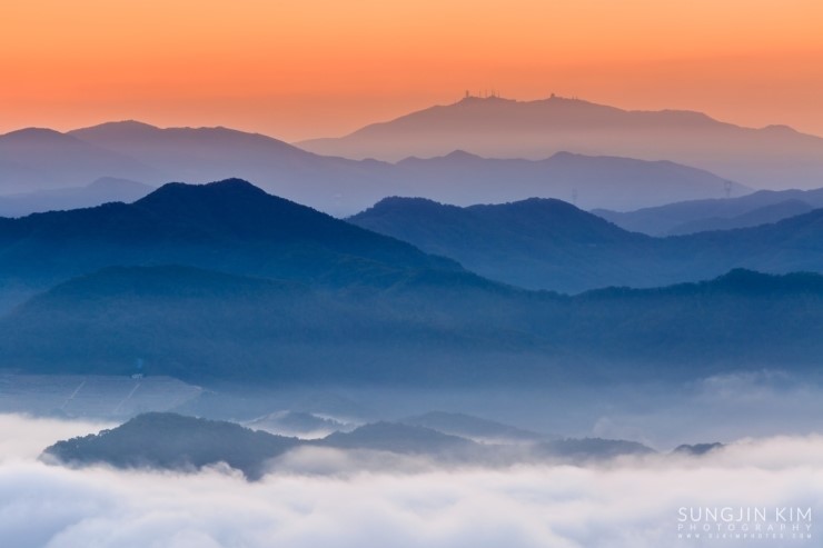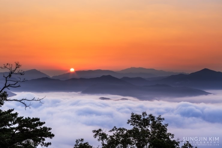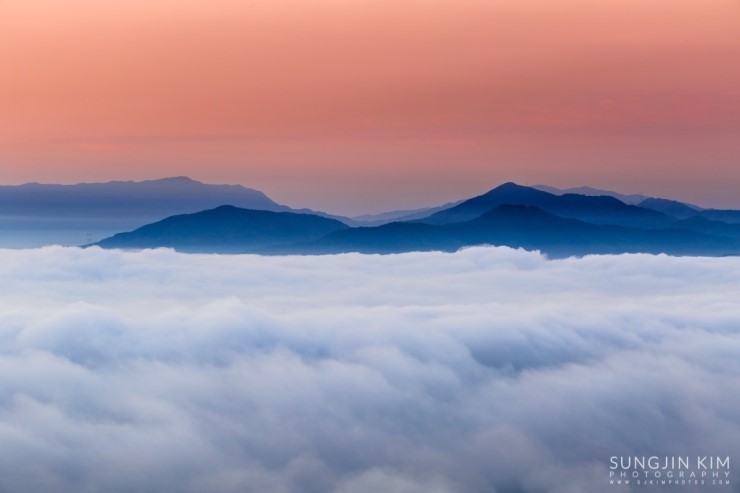 아직 본격적인 운해 시즌이 아니어서 그런지 사진 찍으러 온 사람들은 생각보다 많지 않았다. 처음에는 어둠에 눈이 익숙하지 않아 운해를 제대로 분간하지 못하고 실망을 했으나 조금 지나 자세히 보니 강을 따라 운해가 몰려들고 있었다. 시간이 지남에 따라 산능선 너머에서부터 주황빛으로 물들면서 여명이 밝아 오고 있었는데 산 아래 하얗게 깔린 운해와 함께 아름다운 풍경이었다.