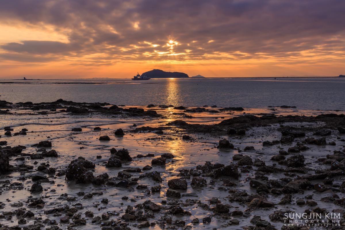 처음에는 상어지느러미 모양의 매도랑을 담을까 하다가 그 곳은 일출각 때문에 좀더 초입 쪽으로 이동해야 해서 그냥 바로 옆의 사렴도라는 작은 섬 옆으로 올라오는 일출을 담았다.