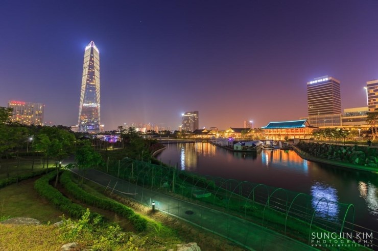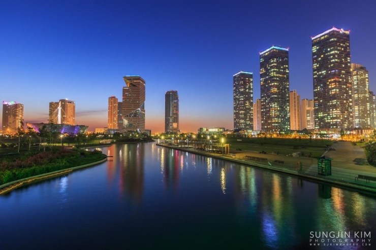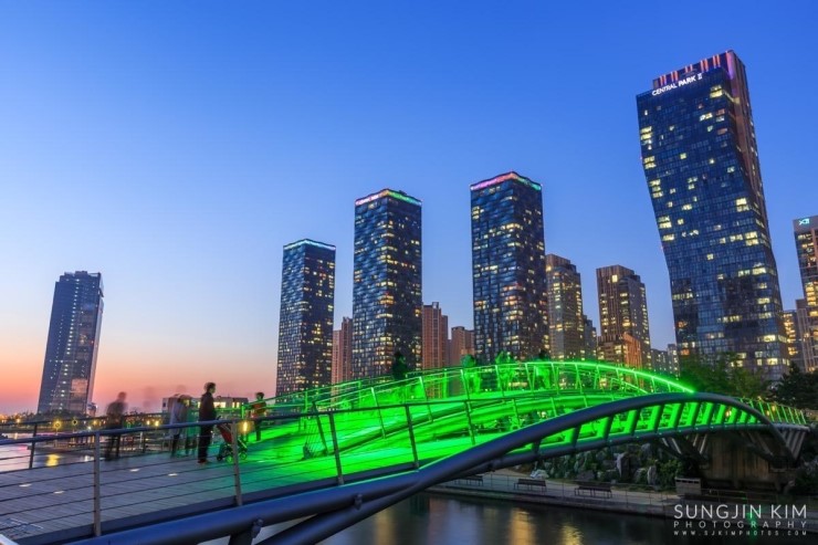 요즘 해지는 시간이 많이 늦어져서 이른 저녁으로 햄버거를 미리 먹고 중앙공원의 수로변에서 땅거미가 내려앉는 송도의 고층 아파트 야경을 담았다. 수로를 건너는 조그만 다리는 기념사진을 찍는 사람들이 수 없이 많아서 사진찍기 쉽지 않았는데 게다가 사람들이 지날 때마다 다리가 흔들려서 타이밍 조절 하느라 더욱 애를 먹었다.