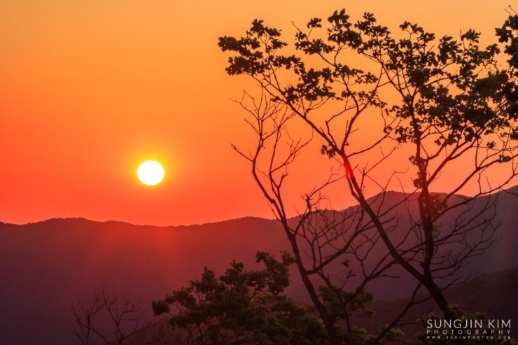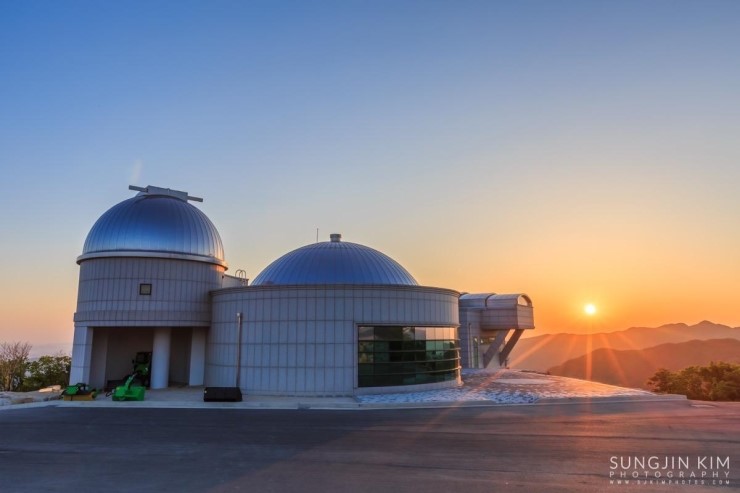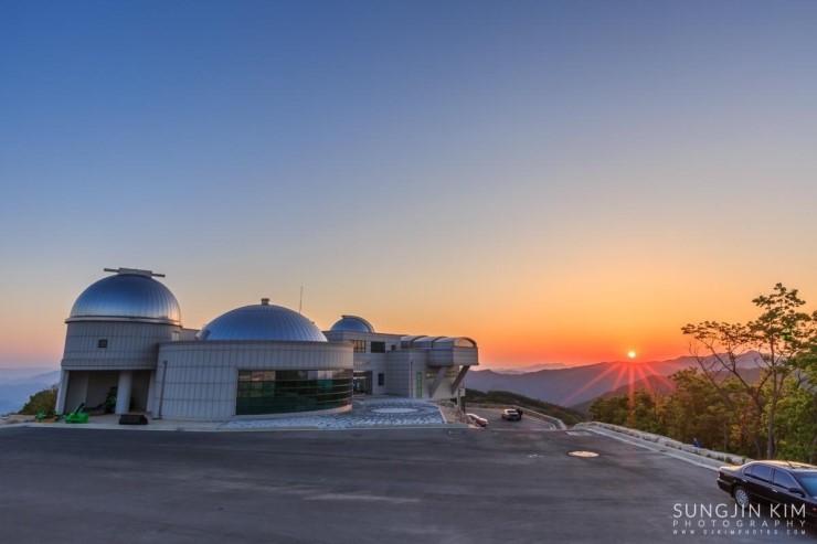 은하수가 하늘로 너무 올라가기 전에 재빨리 촬영을 시작했다. 간단한 타임랩스와 별궤적 그리고 파노라마로 만들기 위한 촬영을 바쁘게 마치고 나니 일출까지 1시간 좀 넘게 남아 있었다. 차에서 잠깐 눈을 붙이며 일출을 기다렸다. 그 사이 그 많던 차들을 하나 둘 주차장을 빠져나가 버리고 몇 대 남지 않았다. 이윽고 먼 동이 터올 무렵 천문대와 일출을 같이 담을 수 있는 장소를 찾아 지평선 위로 해가 올라오길 기다리는 사이 워낙 구름 한 점 없이 맑은 하늘이라 다소 밋밋하긴 했지만 시뻘건 태양이 순식간에 솟아 올라왔다. 길고 긴 출사의 마지막을 장식하는 일출이었다.