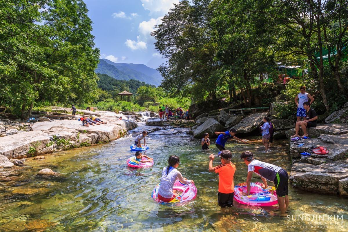 늦여름이어서 그런지 사람도 별로 없고 물은 얼음장처럼 차서 심장마비 걸릴 정도였다. 물이 깨끗해서 그런지 물 속에는 버들치들이 유난히 많았는데 작은녀석 방학숙제를 위해 한마리 잡아서 관찰하고 놓아주었다.