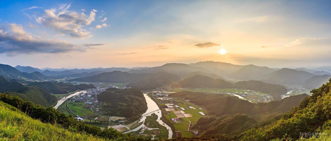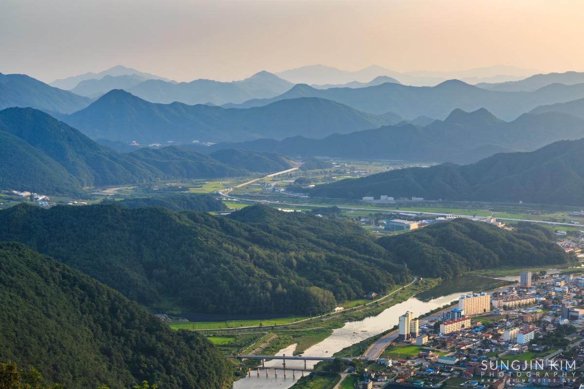 원래 목적지인 미시령에서 별도 담고 일출도 담을 계획이었는데 중간에 평창에서 일몰을 담고 가기 위해 조금 일찍 출발하였다. 평창읍의 장암산 활공장에 올라가 보니 전망도 훌륭하고 방향도 일몰각이라 이런저런 화각으로 사진을 담으면서 해가 지길 기다렸다.