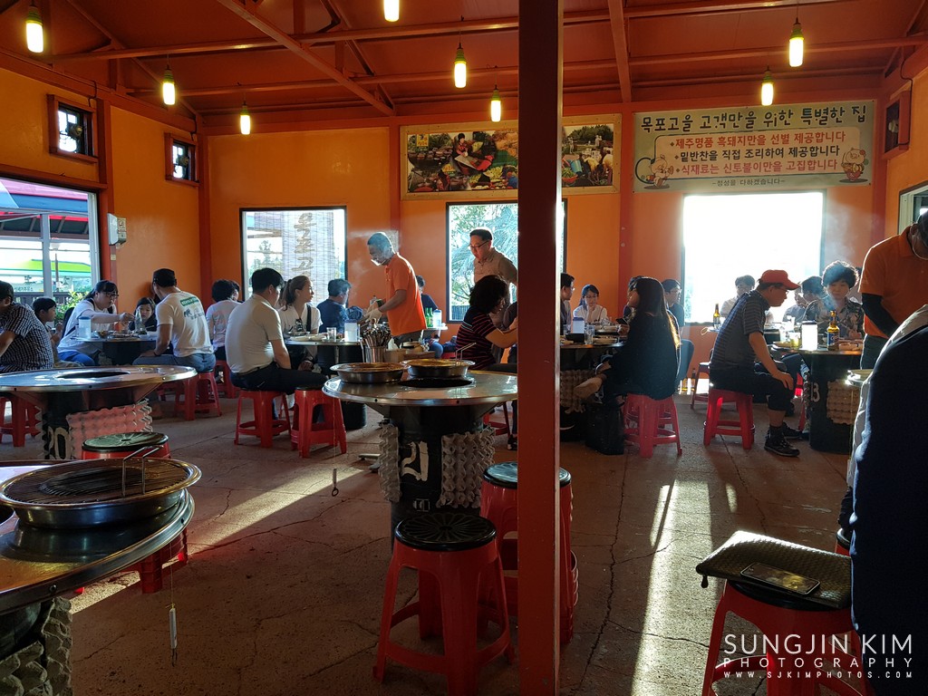 드디어 저녁 식사를 위해 제주 흑돼지 삼겹살 집에...