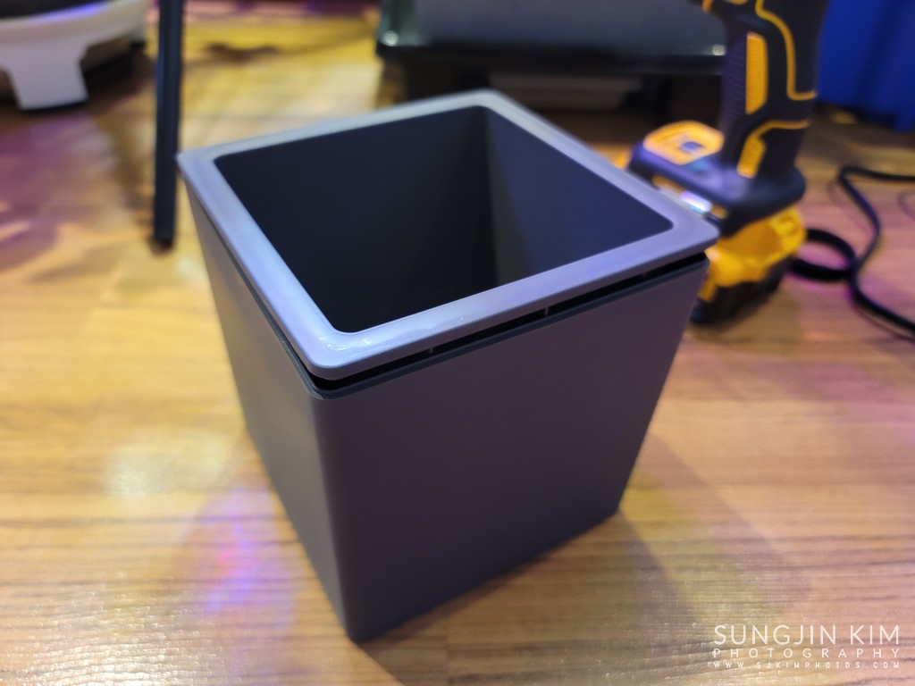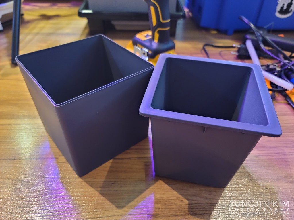 다이소에서 구매한 플라스틱 미니 화분. 내측 및 외측 케이스로 이루어져 있어서 두 개를 분리하면 내부 비어있는 공간이 나온다. 이 비어있는 공간에 미리 제작해 둔 자외선 LED 스트립을 장착해 주면 된다.
