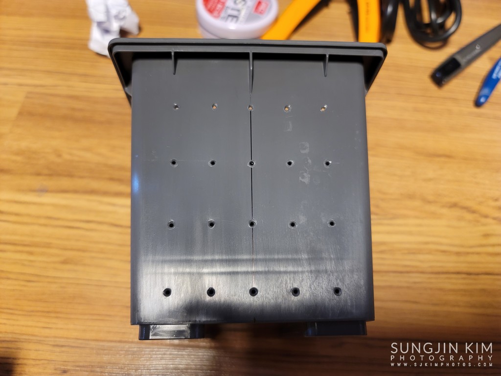 칼로 잘라 놓은 자리가 그렇게 깔끔하지는 않지만 스위치를 장착하면 잘라진 면은 보이지 않기 때문에 그다지 신경 쓰지 않아도 된다.